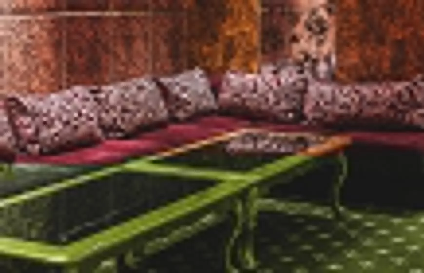 Стены декорированы по принципу мозаики – квадратные панели цвета венге сменяют друг друга и создают эффектный орнамент, мягкая мебель обита вишневым бархатом, а на полу – настоящий персидский ковер с колоритным узором. Зал подойдет для проведения камерных мероприятий.